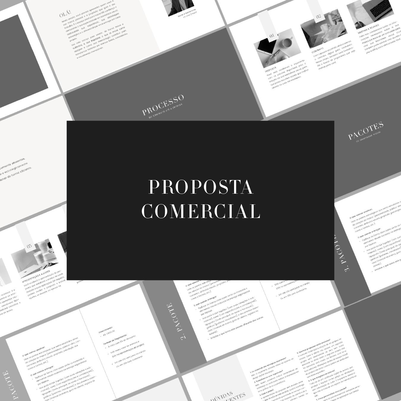 Proposta comercial para apresentar serviços, pacotes, prazos e valores de forma organizada e clara.